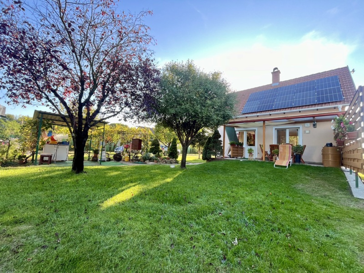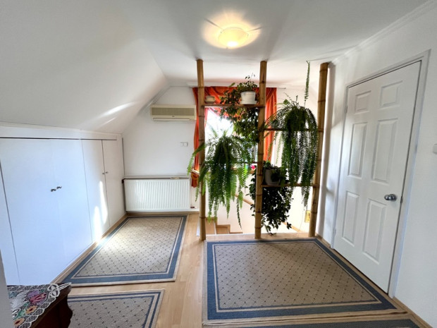 Debrecen határától mindössze néhány kilométerre nyugodt, természetközeli környezetben kivételes adottságú, igényesen kialakított családi ház eladó közel 1700 m2-es telken! Az ingatlan 2004-ben épült, betonalapra helyezett, 30-as téglából készült és szigetelt! A házban található nappali + 2 szoba, étkezőkonyha, 2 fürdőszoba valamint egy tágas, jól használható terasz, amely akár beépíthető is, így további lehetőségeket kínál a bővítésre. Tájolása K-Ny-i, így az egész nap világos és napfényes tereket biztosít. Szép parkosított kertjében garázs, kulturált melléképület, konyhakert és számos termő gyümölcsfa található! Modern felszereltség: - 2 db hibrid klíma -Öntözőrendszer -Riasztó- és kamerarendszer -Száraz pince tárolási lehetőségekkel és spájzzal -8 kW-os napelemrendszer, ami biztosítja a nulla rezsiköltséget -Dupla garázs és automata nagykapu a kényelmes parkolásért A ház kiválóan átgondolt, gondosan megtervezett és megépített, így minden igényt kielégít. Ideális azoknak, akik csendes, zöld környezetre vágynak, miközben Debrecen közelsége minden kényelmet biztosít. Hívjon, tudjon meg többet!