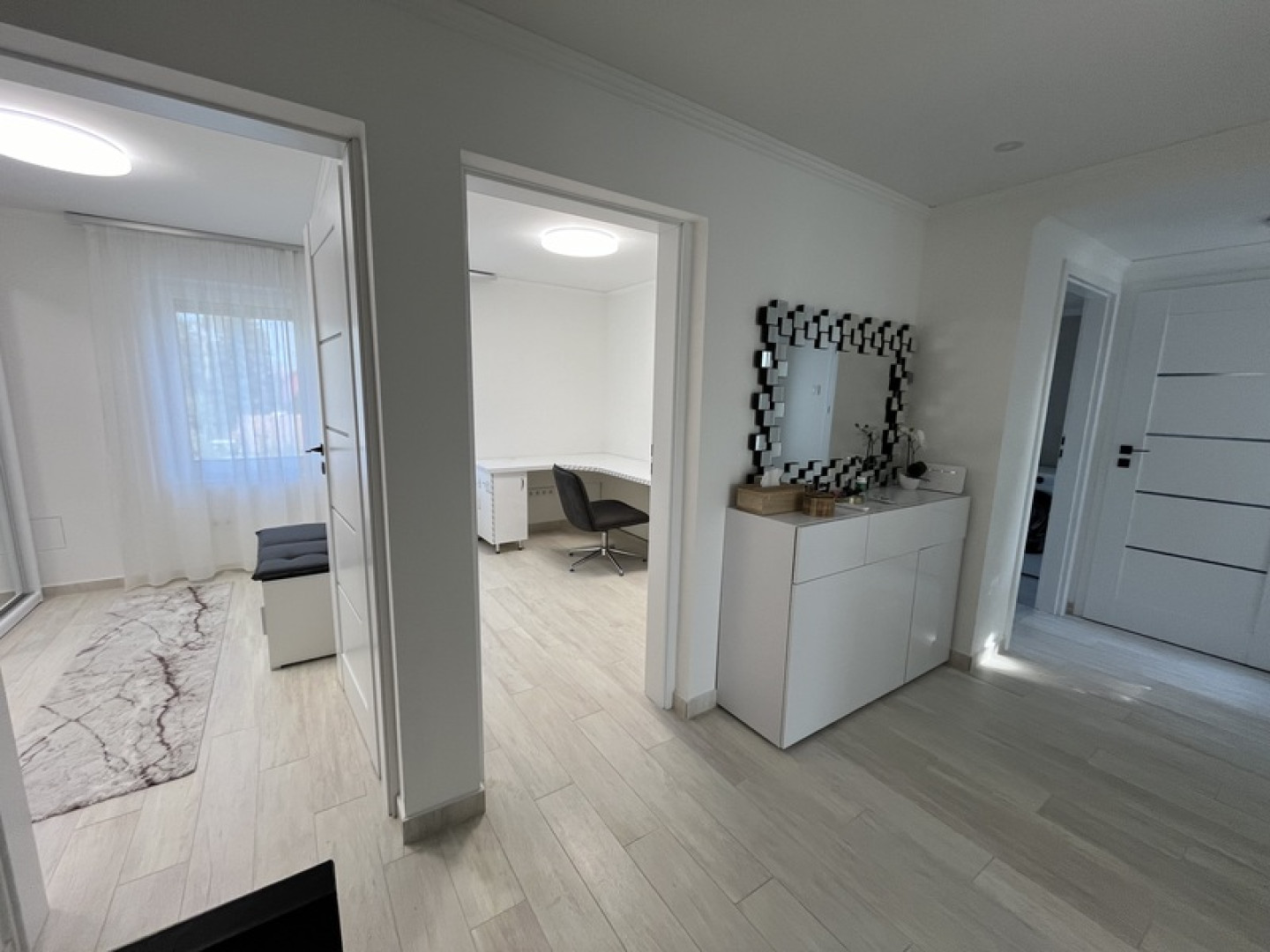 Debrecen Széchenyi kertben exkluzív, teljeskörűen felújított, 3 szoba, nappalis, 2 teraszos, dupla garázsos ikerház eladó. Szép nagy előszoba, tágas élettér, különnyíló szobák, keletre és nyugatra is terasz, elektromos redőnyök, kapuk, kamera rendszer mind a kényelmet szolgálják! Nézze meg, érdemes!