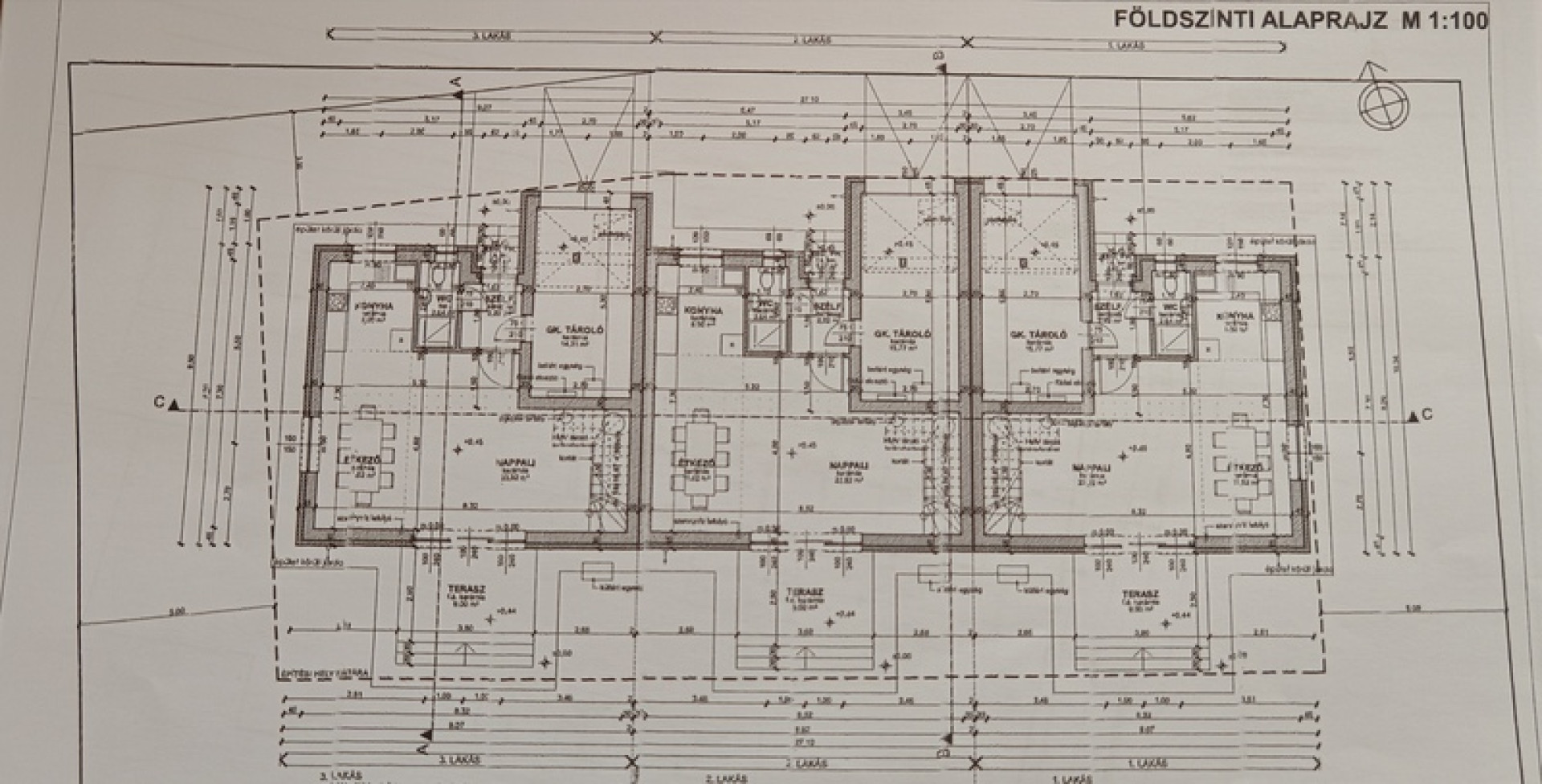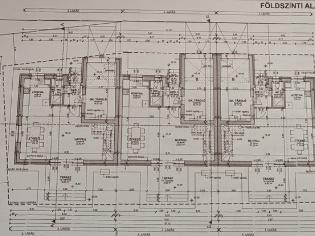 Debrecenhez közel, a dinamikusan fejlődő Hajdúsámsonban, annak kertvárosi hangulatú részén, új építésű sorházi lakások leköthetők. A három lakóegységből álló épület külseje, mind pedig belső elosztása, műszaki tartalma megfelel a mai kor modern, energiahatékony elvárásainak. A jól megtervezett belsőt tágas, világos, praktikusan berendezhető, bútorozható terek jellemzik. A földszinten a bejárat előtt fedett pihenő, szélfogó, konyha-étkező, kertkapcsolatos nappali, zuhanyzóval ellátott mellékhelyiség kapott helyet, míg az emeleten 3 tágas szoba, fürdőszoba és szintén egy mellékhelyiség növeli a kényelmet. A 16nm-s garázs a lakásból is megközelíthető. A komfort növelése érdekében a fűtést hőszivattyús rendszer, a hűtést mennyezeti hűtőrendszer szolgáltatja. 1. számú lakás: összes hasznos alapterület: 111,28 nm, ebből a kiszolgáló hasznos terület 16,44 nm 2. számú lakás: összes hasznos alapterület: 111,28 nm, ebből a kiszolgáló hasznos terület 16,44 nm 3. számú lakás: összes hasznos alapterület: 109,82 nm, ebből a kiszolgáló hasznos terület 14,98 nm Az épülő ingatlan 70%-os készültségben van, tehát ne habozzon, formálja a dizájnt saját ízlésére! További bővebb információkért hívjanak bizalommal!