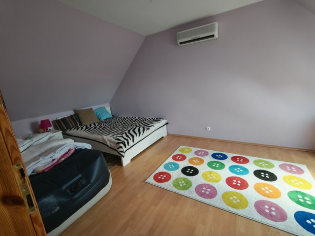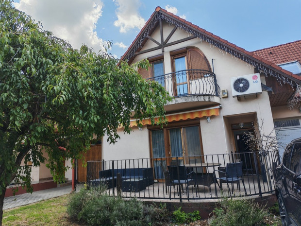 Ez a szép sorház jól megközelíthető, nyugodt, rendezett utcában helyezkedik el!! A 1618 m2-es telekből 323 m2 kizárólagos használatú, a fennmaradó rész osztattlan közös tulajdon a 4 szomszéddal. A két szintes klamazitizált ház alsó szintjén padlófűtés, a felső szinten radiátoros fűtés biztosítja a kellemes hőmérsékletet. A földszinten előszoba, amarikai konyhás nappali, fürdőszoba+WC és egy terasz található. Az emeleten négy külön bejáratú szoba kapott helyet, -ezek közül kettőhöz saját terasz is tartozik-, valamint külön helyiségben fürdőszoba és WC. Az ingatlanhoz tartozik egy 18 m2-es fűtött garázs, autómata kapuval, valamint vízvételilehetőséggel és kézmosóval. Ajánljuk többgyermekes családoknak vagy nyugodt kervárosi környezetre vágyó idősebb pároknak egyaránt!